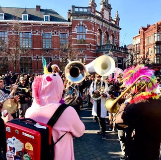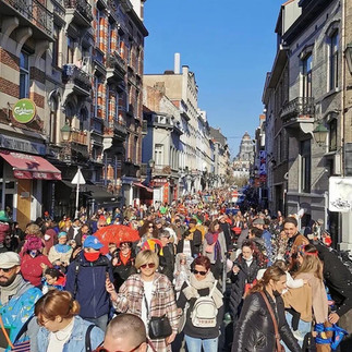 Départ en fanfare avec « Krewe du Belge, « Baque de Chuva », les géants des « Poepedroegers», les associations locales et à l’arrivée…merci à toute l’équipe de la « Cohésion Sociale », d’Ensemble pour 1060, des Gardiens de la Paix, de la police et du Service de la Propreté !
