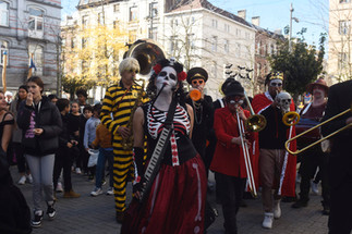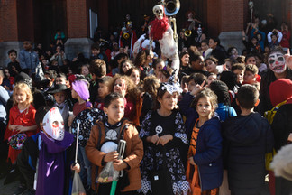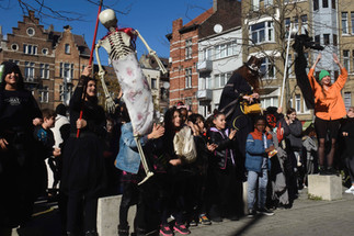 Vendredi 21 octobre 2022, dernier jour d"école pour les élèves de l'école maternelle et primaire St Antoine à Forest. Parade avec 350 enfants et leurs professeurs, qui se sont tous mystérieusement transformés en monstres ...
